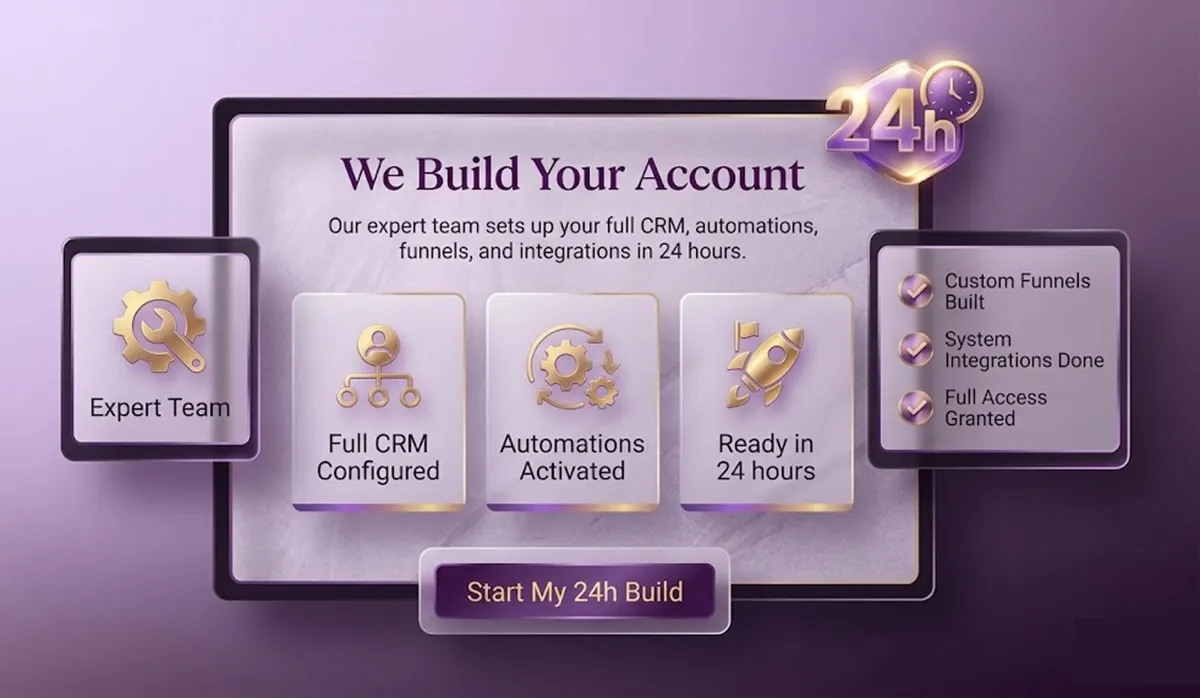 Our expert team sets up your full CRM, automations, funnels, and integrations in 24 hours.