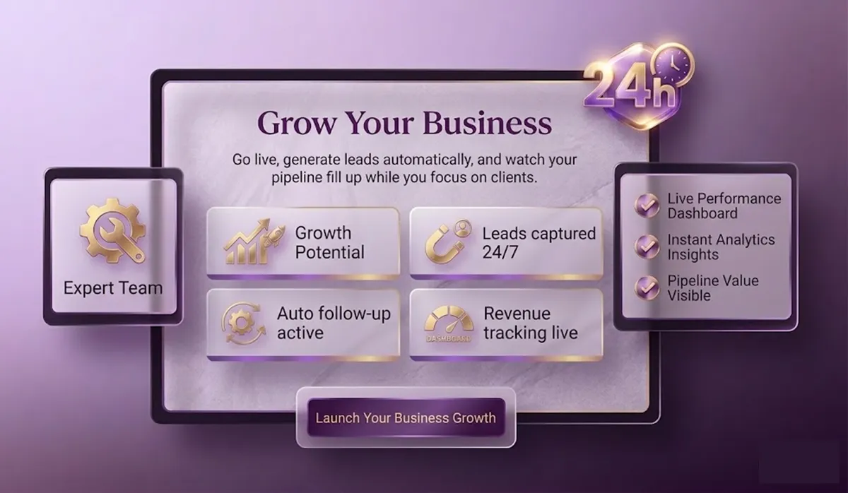 Get a fully-managed platform with CRM, automation, smart funnels, and AI tools — set up and running in 24 hours. No tech headaches. No guesswork. Just real, measurable growth.